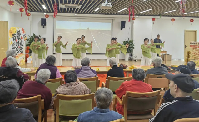10月27日,新城办组织社区老年学校舞蹈班与合唱班学员走进南山康养中心,开展“孝亲敬老,爱暖桑榆”主题慰问活动,丰富康养中心老人精神文化生活。(新城办 白蓉)