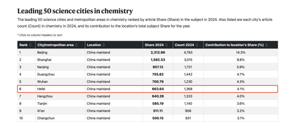 化学排名合肥位列全球第6