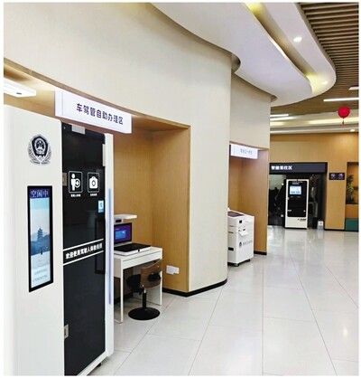 走进服务中心的一楼大厅,最直接的感受就是“一眼望去都是自助办理机”。除了服务台和交管等少数几个窗口外,签注、车驾管、户籍等常见业务,都实现了全自助办理模式。