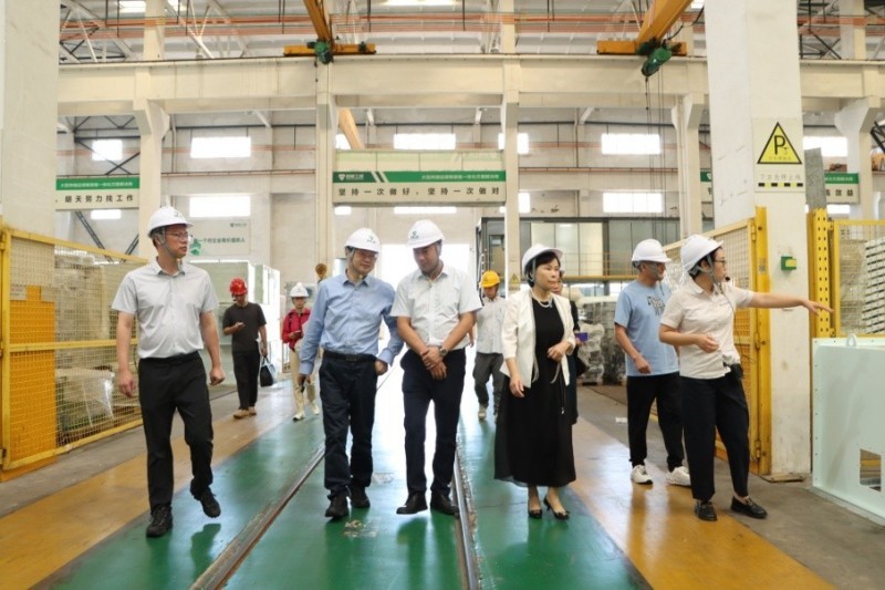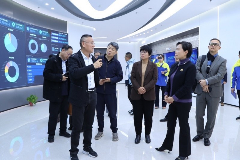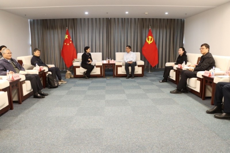 聚盟共建董事长张玉晶(左2)向促进会领导介绍企业发展情况