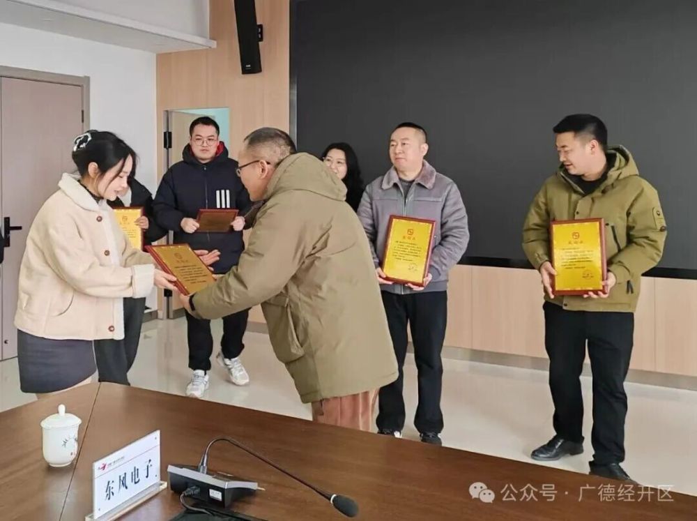 会后,熊栋林向广德经开区管委会及诺达佳、威灏、东风、竹昌、东威等5家企业颁发了感谢状。