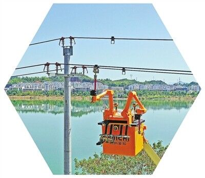 国网杭州供电公司在千岛湖开展农村配网机器人带电作业。