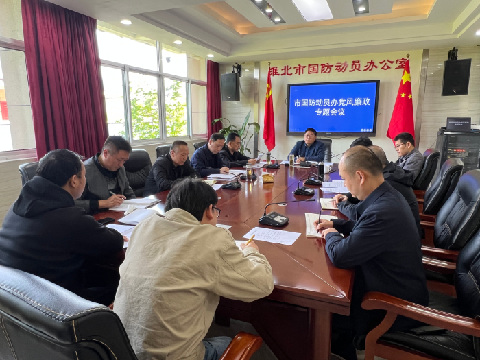4月24日,淮北市国防动员办公室召开党风廉政建设专题会议。办党组成员、机关科室和事业单位负责同志参加会议,市纪委监委派驻市发改委纪检监察组副组长冯政到会指导。办党组书记、主任谢谢主持会议并讲话。