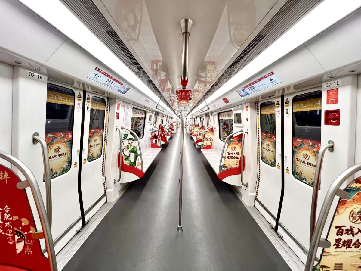 “同时,专列还穿插‘国粹’主题氛围画面,将戏曲服饰、道具、脸谱等文化符号与现代设计语言结合,既保留传统韵味,又符合当代市民审美。”合肥轨道交通相关人士介绍。