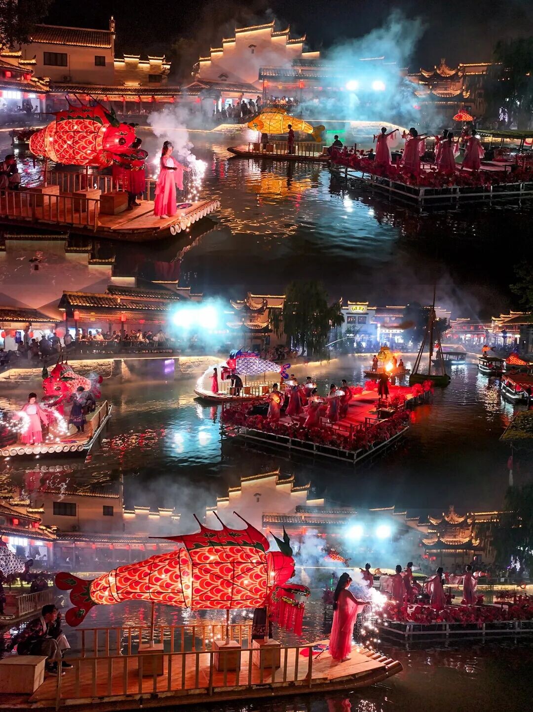 音乐起,歌声扬。“七仙女”乘着竹筏,在水上舞台挥舞着水袖,经典曲目《天仙配》徐徐唱响,引得周围观众阵阵喝彩。“打破传统舞台的界限,融入‘仙游水镇’等情节,把演出放在古巷、小桥、水面等实景场地,让游客成为剧中人。”演出的策划人茆建琳说道。