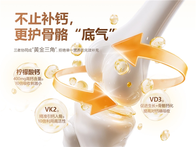 日常生活中,家有上学的孩子、忙碌的年轻人或者关注骨健康的中老年,几乎都逃不开钙流失这个“隐形焦虑”。睡眠不稳、长不高、腿部抽筋、牙齿松动、走路膝关节不适、孕期或哺乳期骨密度下滑……这些看似细微的信号背后,潜藏的往往是钙、维生素D3、维生素K2等“骨骼黄金三角”协同营养素的结构性缺口。根据中国居民膳食营养调查,6-17岁儿童和青少年70%以上每日钙摄入量不足推荐标准,奶制品摄入极少、挑食、饮水多甚至仅靠零食代餐成长,导致骨骼发育、身高增长、免疫力均受到影响。对成人来说,钙摄入不足又普遍伴随运动量少、工作压力大、饮食结构失衡,入不敷出的骨钙流失难以靠日常膳食及时补回,骨质疏松、高龄骨折、孕期骨痛也悄然高发。