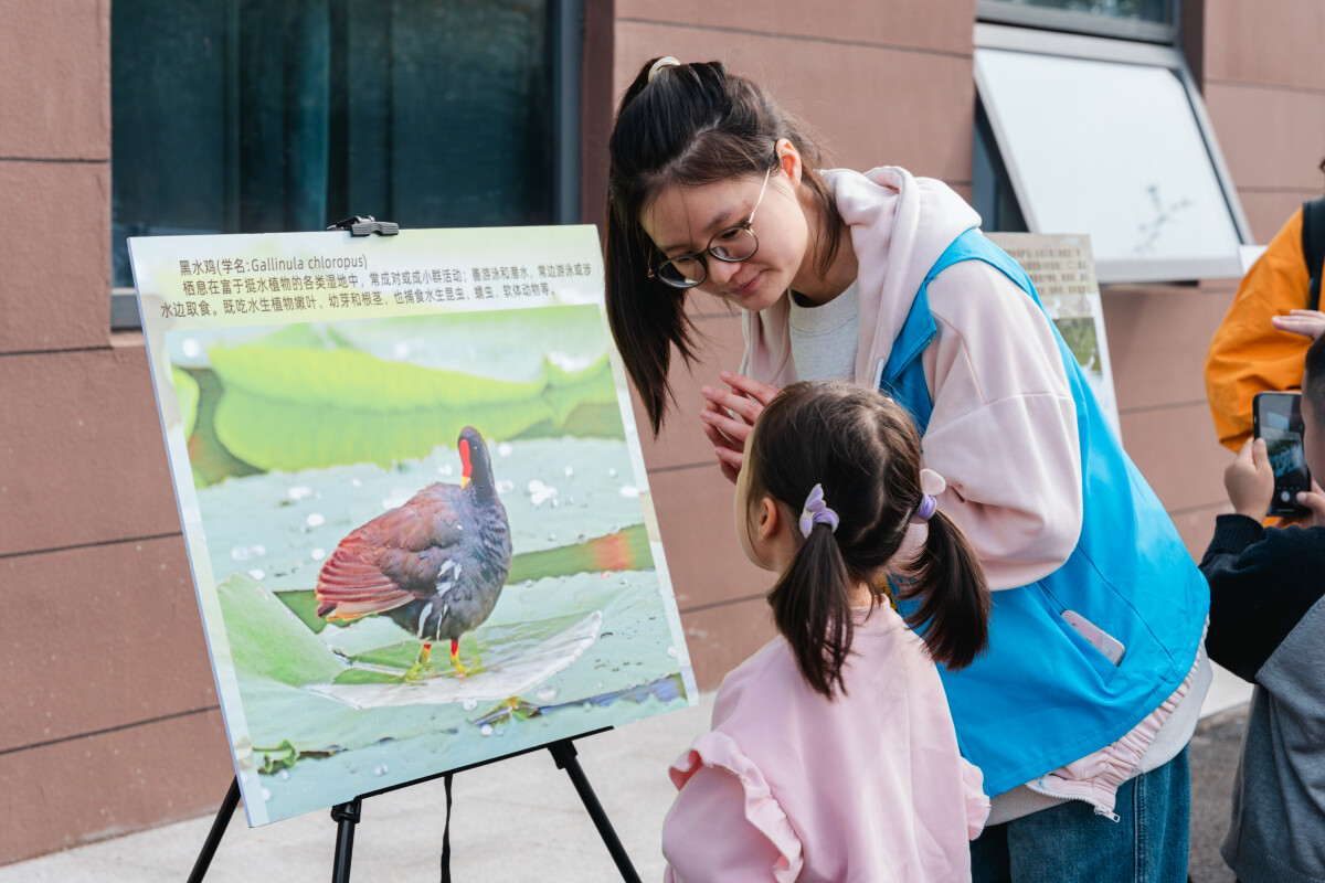 一面“自然笔记墙”慢慢被贴满。稚嫩的线条和涂色,像把湿地故事稳稳留住。一位妈妈低声说:“孩子爱鸟,画鸟的时候特别认真。”