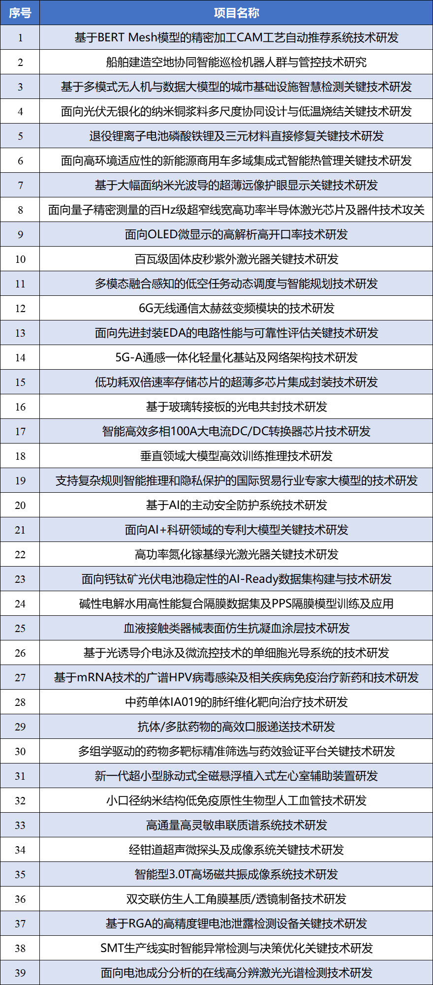 2025年苏州市关键核心技术攻关项目立项清单
