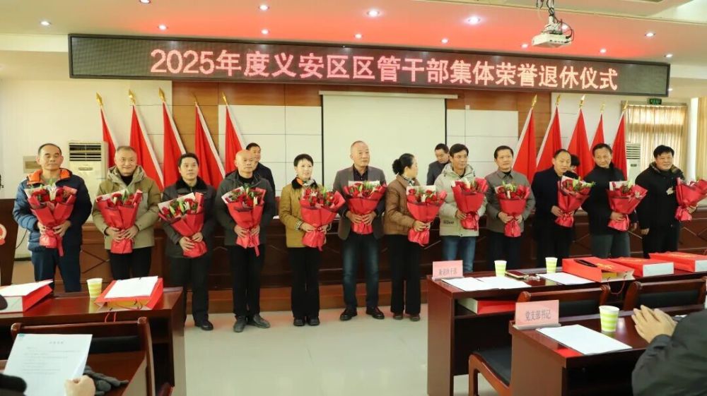为体现组织关怀,增强退休干部的荣誉感、归属感和幸福感,1月9日,2025年度义安区区管干部集体荣誉退休仪式在五松镇政府六楼会议室举行,区委常委、组织部部长曾名龙参加并讲话。