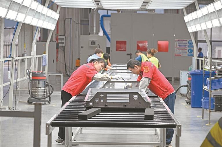 近日,位于南陵县许镇镇龙潭汽车零部件产业园的安徽众源智造科技有限公司内,生产线上一片繁忙景象,工人正开足马力生产电池箱体。