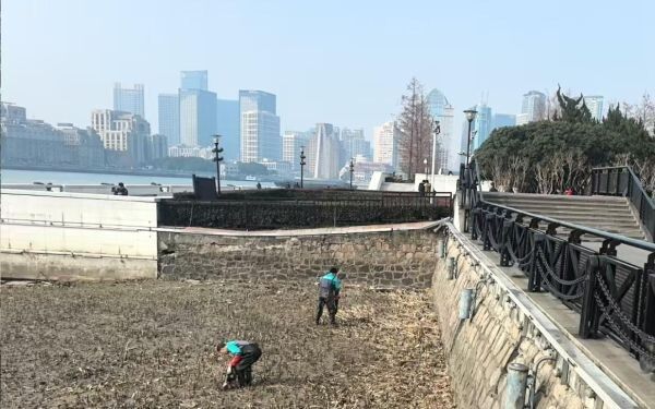 此外,节日期间,水陆联动保洁将再度升级。水域保洁作业时间调整为7:00至17:00,实行午休时段轮班作业,实现日照时段保洁全时段、不间断覆盖;同时加密重点水域保洁频次,加强滩涂清理。针对当前江面残留水葫芦残根、枯枝易在张家塘河口聚集的问题,进一步加大航扫频次与打捞力度,确保漂浮杂物随现随清。陆域方面,前滩公园责任单位已全面加强节日期间日常管理与人员配置,承诺快速响应、高效处置各类诉求,确保公园及沿岸环境整洁有序。