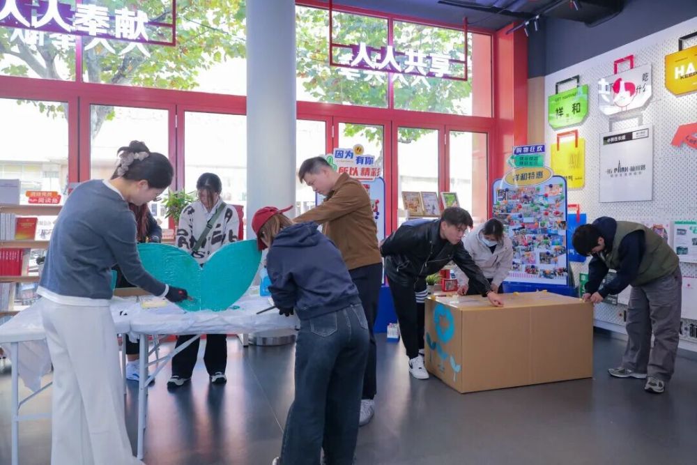 潮玩街区·青春“碳”索活动中街区青年制作环保装置