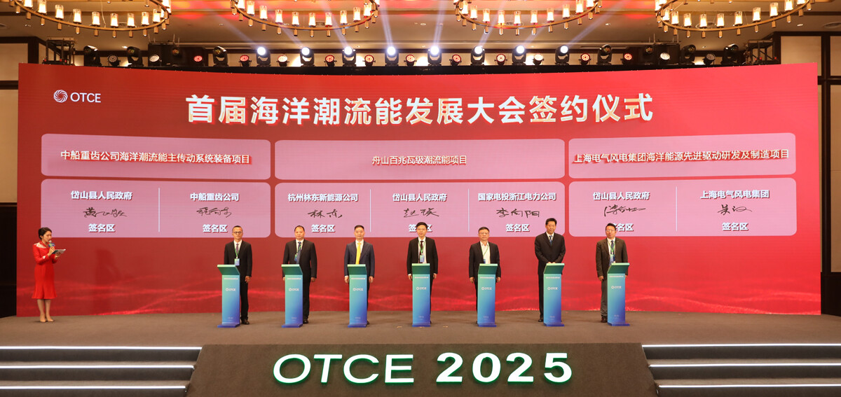 发展大会上,百兆瓦潮流能规模化利用项目签约。该项目由国电投浙江公司、杭州林东新能源科技股份有限公司联合投资,总装机容量100兆瓦,一期拟在我县官山岛周边海域布置20台2.5兆瓦机组,装机容量50兆瓦,一期项目总投资18.3亿元。