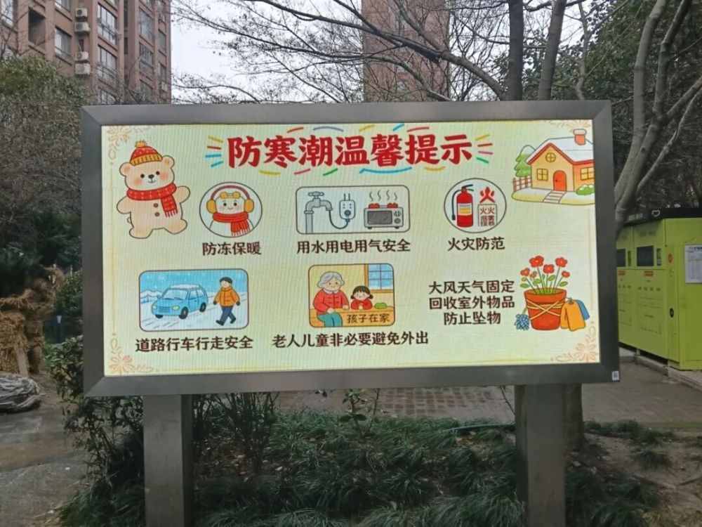 罗店镇各居民区与物业公司全面开展防寒防冻工作。居委会通过业主群、社区云、电子显示屏等线上线下渠道,及时发布寒潮预警与防冻提示,并组织人员上门走访,重点关注独居老人、残疾人等特殊群体,及时了解需求,协助落实防寒措施。物业公司重点加强小区公共设施防护,包括为室外消防栓、水管等加装保温棉、防冻套,关闭楼道门窗,并配合居委会开展特殊群体防寒检查与应急帮扶。同时,进一步完善寒潮应急预案,组建应急队伍,对黄沙、铁锹、草垫、保温材料等应急物资进行清点与补充。