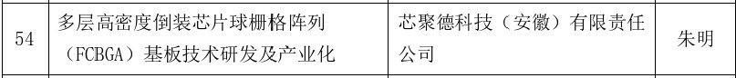 其中,广德经开区主园区企业芯聚德科技(安徽)有限责任公司的所属项目“多层高密度倒装芯片球栅格阵列(FCBGA)基板技术研发及产业化”成功入选。