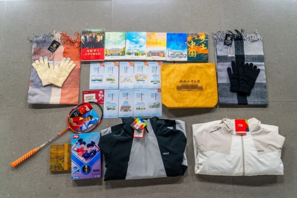 围巾、手套、励志读物、校庆纪念文创……暖心礼包里,包含着多样冬日用品和实用物资。