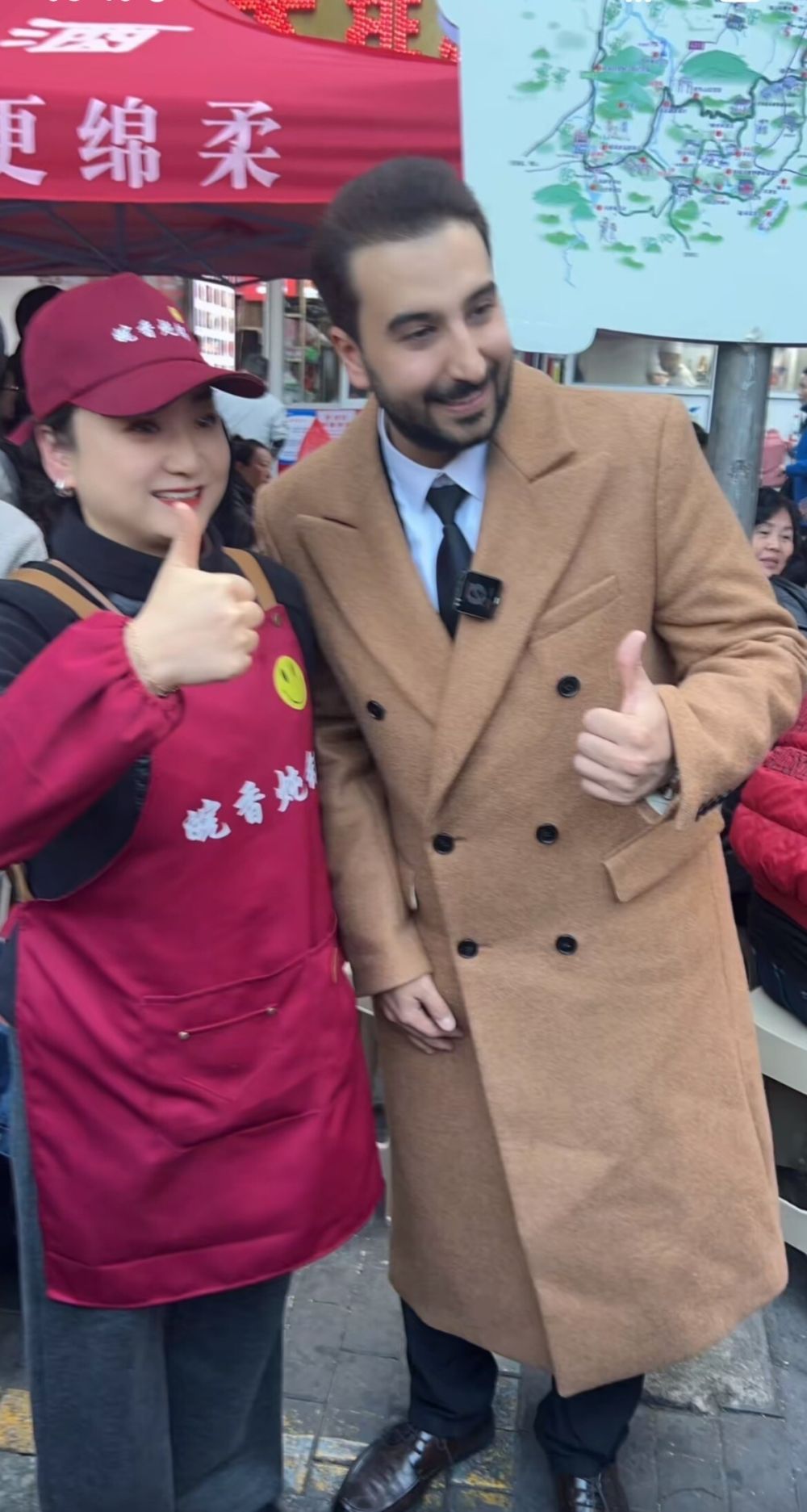 12月16日晚,伊拉克籍千万粉丝网红“老王在中国”现身安徽广德街头,在迎春街和绥安路等地打卡广德“三件套”,并向当地群众亲切问候祝福。