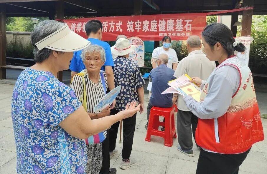 9月16日,铜官山社区联合解西卫生服务站开展健康知识宣传活动,医护人员通过发放宣传折页、现场讲解,向居民普及“三减三健”核心知识。(铜官山社区 章悦涵)