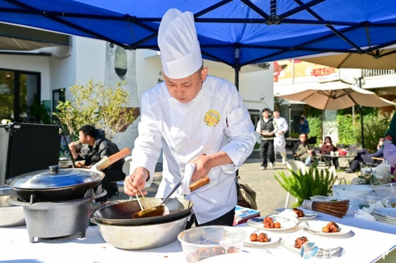 上午9时,比赛正式开始。现场8个操作棚依次排开,采用“流水席”式循环比拼模式。选手们按抽签顺序依次入场,在45分钟内完成一道以“鱼”为核心的命题菜和一道自选菜。灶火燃起,锅铲翻飞,鲈鱼狮子头、花开富贵牡丹鱼、秃黄油蒸鲈鱼等在选手们的巧手下焕发新生。
