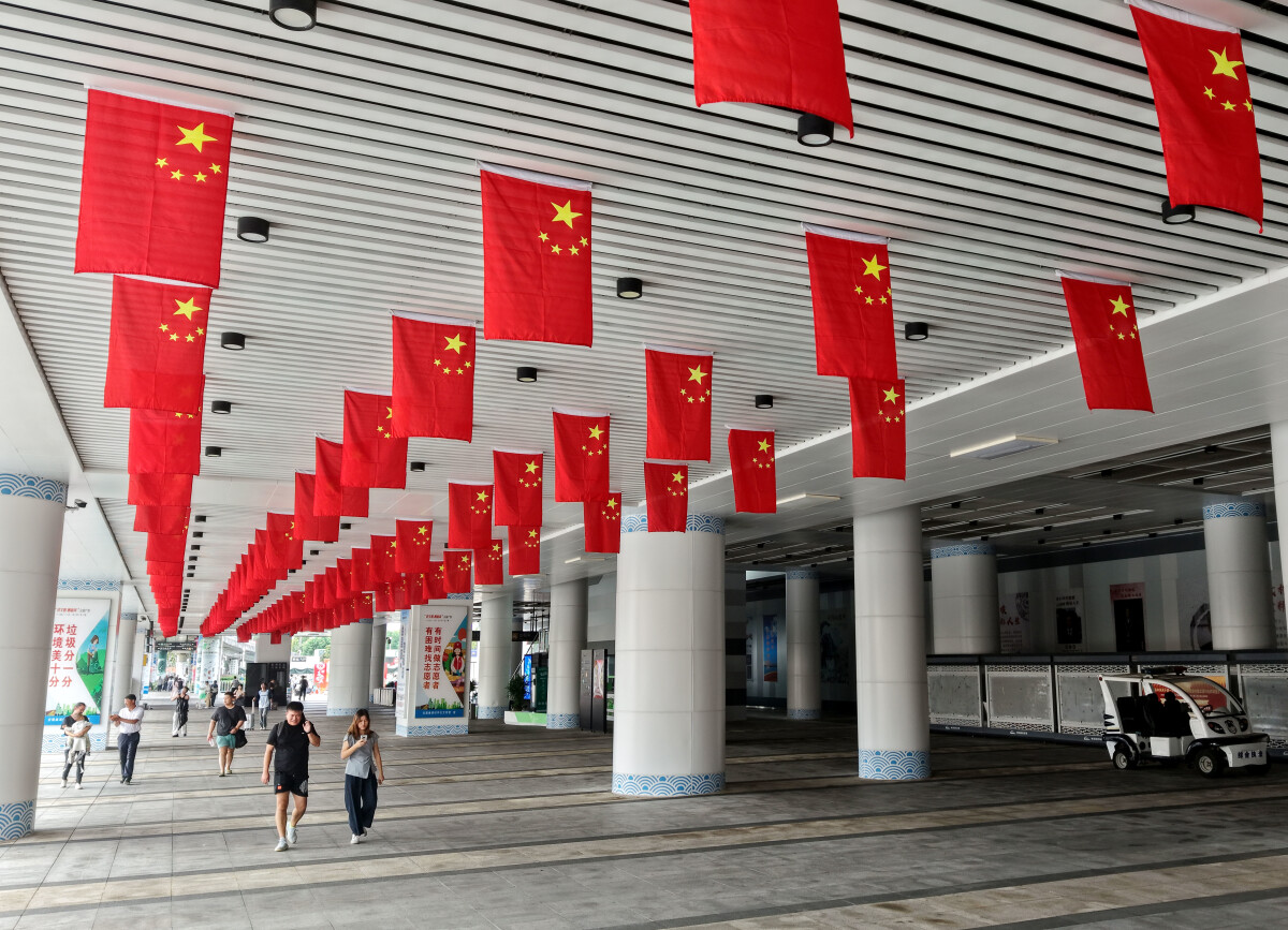 出站口处,飘扬的国旗与旅客脸上的期待和喜悦相互映照——刚下高铁的游子见旗心暖,归家的路更添一份亲切;准备出行的市民望旗心安,胸中的自豪感也油然而生。无论归途还是启程,人们都能在这片“中国红”中,真切感受到国家的繁荣与节日的温馨。