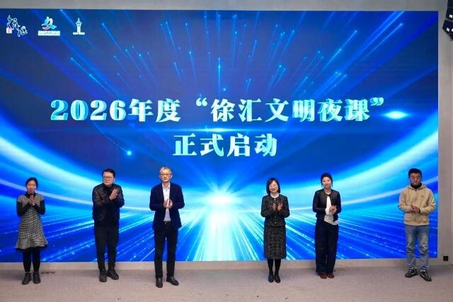 如今,徐汇文明夜课已成为一张闪亮的文明实践品牌名片,凭借丰富的文化底蕴与高质量的课程内容,已深度融入市民日常生活,成为深受市民喜爱的品牌项目。新的一年即将到来,文明夜课将以全新体系再度启航。活动现场举行了2026年度“徐汇文明夜课”课程体系发布暨启动仪式。与会领导、“相约158·文明夜课”主理人代表及学员代表共同上台,点亮新一年的夜课课程,标志着2026年度“徐汇文明夜课”正式扬帆起航。