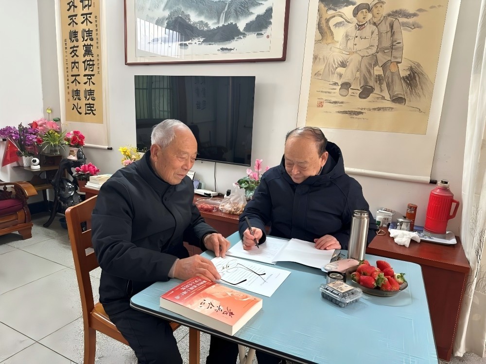 赵明才(左)与《老兵新传》作者夏学海交流