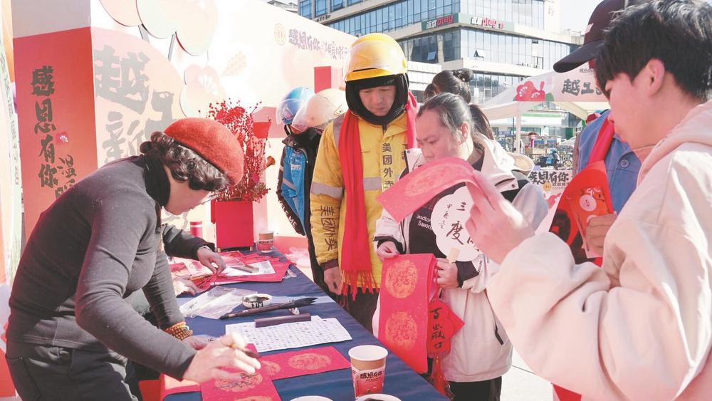 活动在金帝银泰百货惠金广场设立了主题服务市集,提供公益理发、中医义诊、肩颈按摩、法律援助、写春联送祝福、体验非遗糖画、养生热饮、修鞋改衣、最美新年照拍摄等一系列贴心服务,向外卖骑手、环卫工人、快递员等户外劳动者们传递温暖,送上新春祝福。