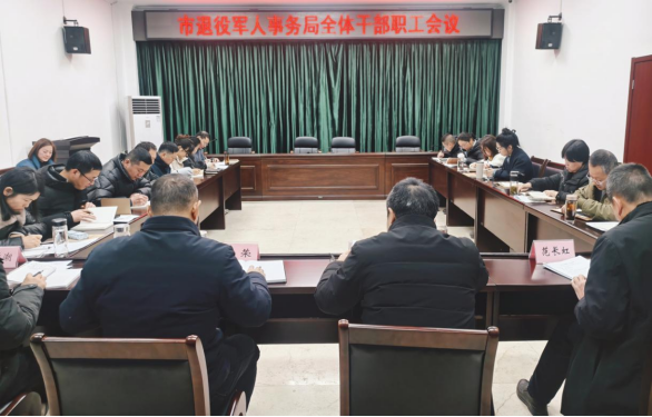 近日,黄山市退役军人事务局召开全体干部职工会议,传达学习市两会精神和开展党的二十届四中全会精神学习交流会暨“开口能讲”活动。局党组书记、局长盛祁峰主持会议并讲话,局机关和二级机构全体干部职工参加。
