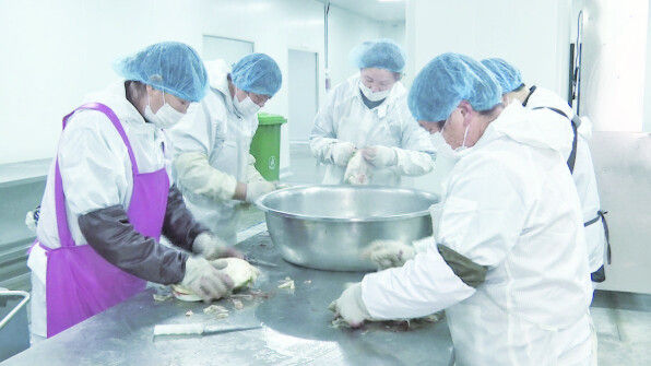 安徽溢洲食品有限公司的加工车间内,工人们正在有条不紊地处理着甲鱼、鸡、鹅等食材。经过宰杀、精准温控蒸煮和无菌包装等多道工序,这些食材转化为高附加值的即食产品。