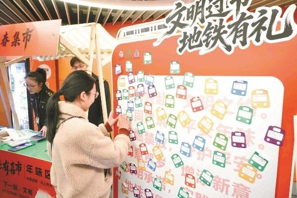 手作纳福站里,非遗拓印、福字描摹等项目使市民乘客在动手体验中感受传统文化魅力,为通勤时光注入仪式感。新鲜直达站里,活动精准对接民生需求,本地新鲜时蔬直达现场,让市民乘客下班顺路捎回绿色美味。“地铁里的年味太足了,顺路就能办年货、写福字,归途都变温暖了。”一位乘客笑着说道。