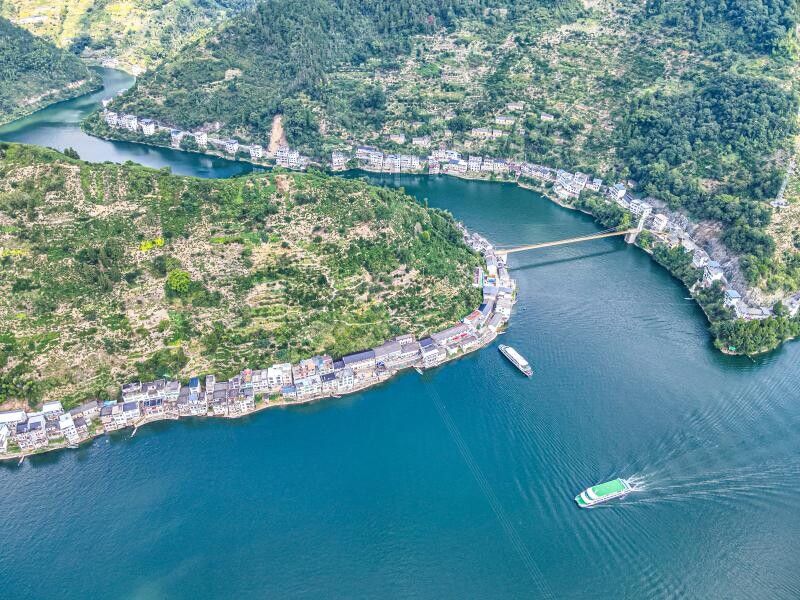 新安江在歙县街口村拐出一道温柔的弧线,江面倒映着青砖黛瓦,这座千年古村的故事,始终与水脉相连。站在悬索吊桥上远眺,水面之下沉睡着1959年前的街口老街——青石板路上曾回响着南北商贾的脚步声,姚氏茶行的算盘声与船工号子交织成韵。