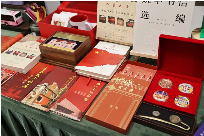 红色文化是虹口最深沉的精神底色,也是文创产品的灵感源泉。中共四大纪念馆带来的“红色文化”文创系列,将历史元素与现代设计巧妙结合,复刻着“十四五”期间虹口红色资源活化利用的丰硕成果。从印有四大历史场景的纪念徽章到融入革命标语的文创笔记本,每一件产品都承载着红色记忆,成为融合发展的生动注脚。