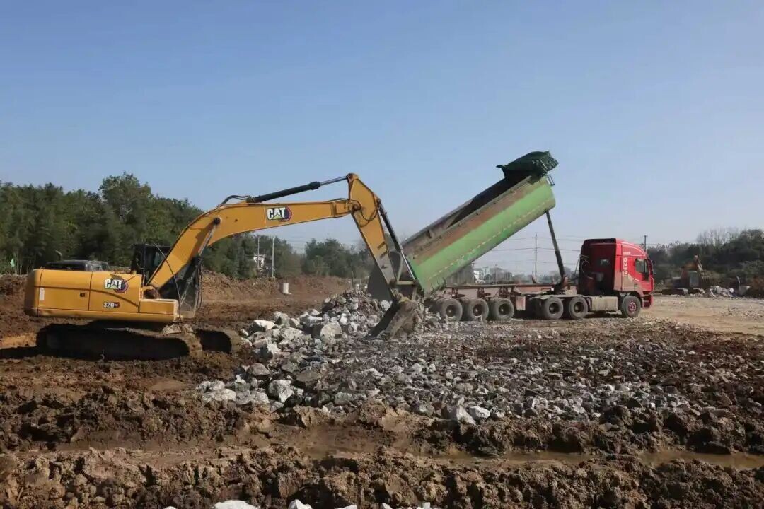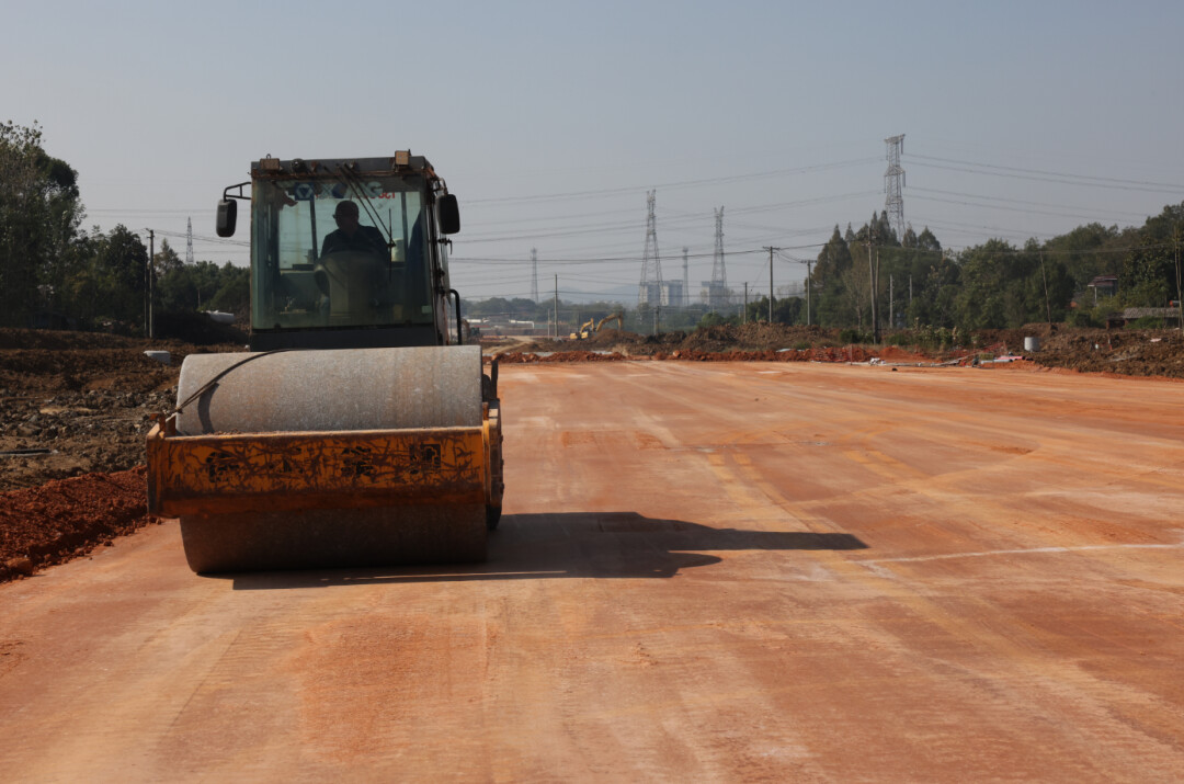 “项目自实施以来,我公司高度重视,科学组织,针对现有工作面多点同步穿插。”施工单位项目经理胡家钱介绍,目前,项目已顺利完成全线清表工作及12万米水泥搅拌桩复合地基处理,正集中力量全力推进路基施工,“我们会持续抢抓晴好天气,大干快上,力争早日建成通车。”