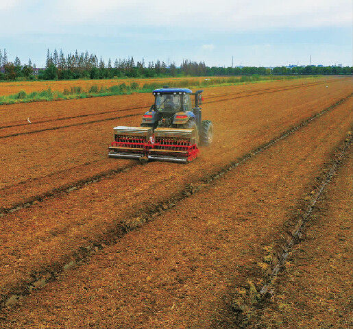 正值小麦播种关键期,在江心沙农场的田间地头,一台搭载北斗卫星定位系统的正反旋播种机来回穿梭(见上图),农机手只需在驾驶室内设定参数,机器便能沿着预设轨迹精准作业。随着一粒粒小麦种子伴随着轰鸣声均匀落入土壤,一幅科技赋能的现代化农耕画卷徐徐展开。