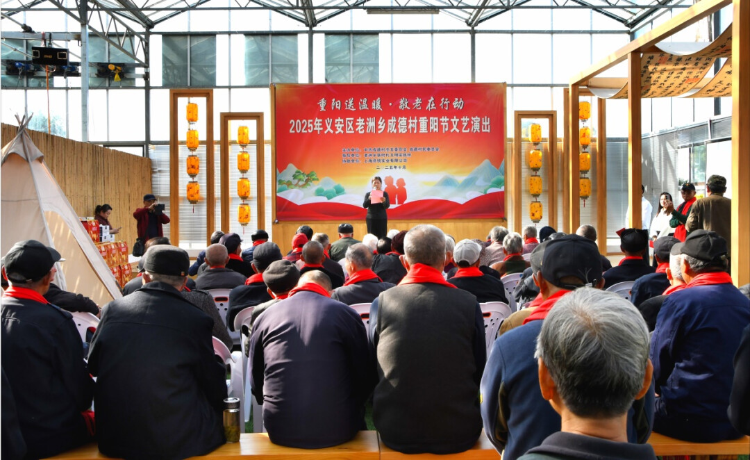 “戴上这条围巾,不光脖子暖,心里更暖!”10月29日重阳节,老洲乡成德村的乡野拾光文化空间里暖意融融,83岁的郑大爷抚摸着肩头崭新的围巾,眼角的皱纹里都漾着笑意。当天上午,一场热闹又暖心的敬老文化活动在这里举行,83位80周岁以上老人欢聚一堂,共庆佳节。