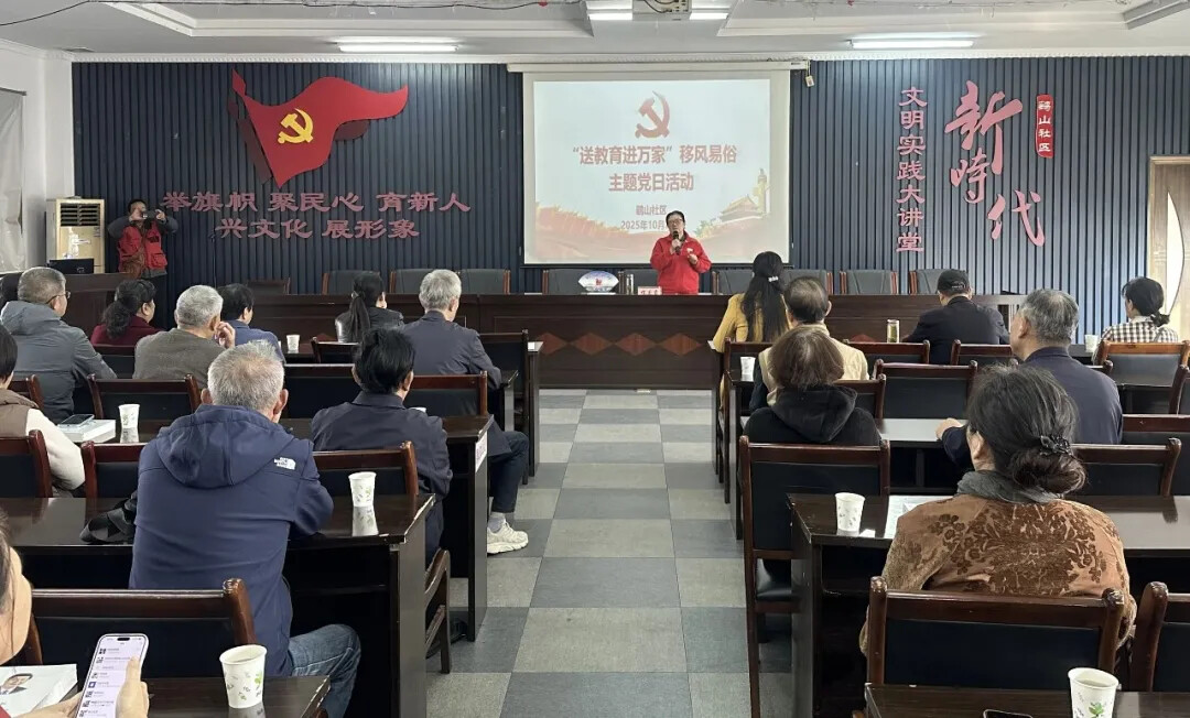 10月25日上午,鹞山社区组织开展“乡风文明进万家”主题党日活动,引导广大党员在服务群众中践行初心使命,在宣传教育中提升自身修养。(鹞山社区 江姜)