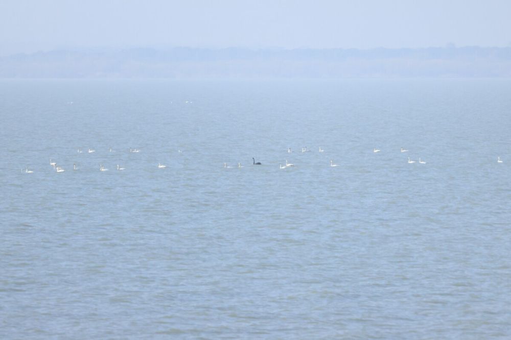 “它是混在小天鹅里的。”监测人员说。黑天鹅高高扬着颈项,谨慎又笃定。它保持着与人类的距离,却跟着小天鹅的节奏觅食、游弋,仿佛在白羽世界里找到了自己的“临时队伍”。