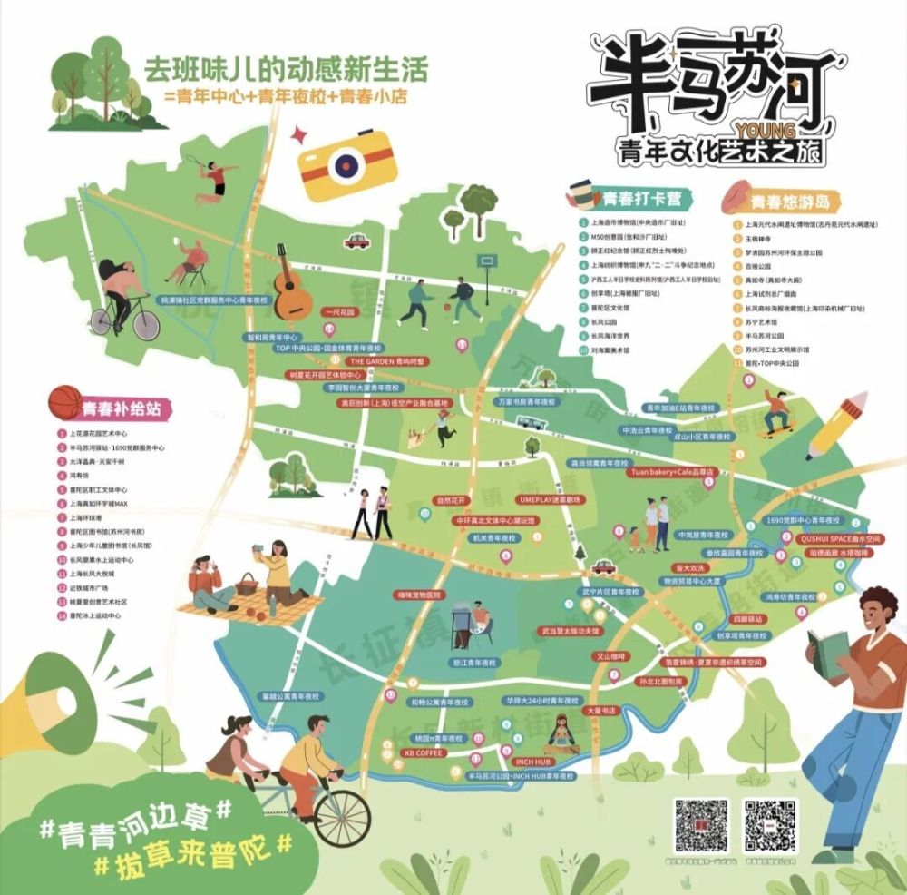 当前,不仅鸿寿坊、M50等区域的一批青春小店快速成长,青春经济的服务生态也日益完善。成立的青春经济服务联盟,通过整合MCN机构、探店主播等资源,为青年创业者提供从孵化到推广的全链条服务。例如,“青春助企服务团”开展“楼宇助企再升级,惠企服务零距离”活动,便将服务直接送进了商务楼宇,打通了服务青年的“最后一公里”。活动现场同步发布的“半马苏河”青年文化艺术之旅路线图,更是将区域内青春小店、消费地标和活动信息集于一体,让青年实现“一图在手,畅游普陀”。