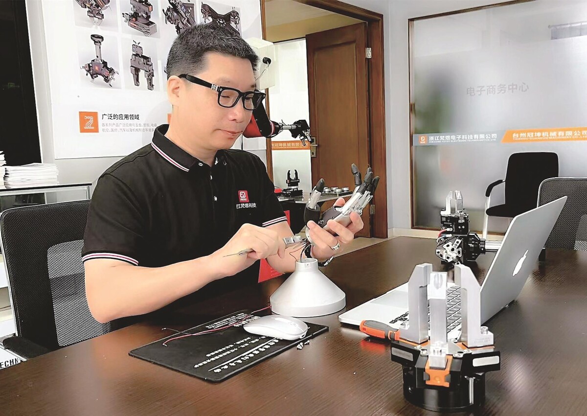 如今,黄永杰正带领团队日夜攻关,全力研发具备触觉感知能力的机器人灵巧手。“从画图纸到生产造机器人末端,我一直坚信:把简单的事做到极致,就是不凡。”这位从“画图匠”起步的企业家,正用自己的方式,诠释着台州企业家的创新精神与实干力量。