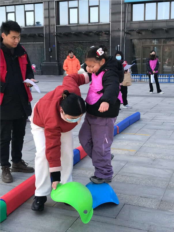紧接着的“摸石头过河”项目则更考验策略与平衡。孩子们需要利用有限的彩色泡沫垫作为“石头”,手脚并用地“渡河”。家长们此时化身最智慧的“军师”和最热情的“啦啦队”,在一旁紧张地指挥。整个区域充满了稚嫩的惊呼、开怀的大笑和温暖的加油声,亲情在紧密协作与共同挑战中悄然升华,成为冬日里最暖心的风景。