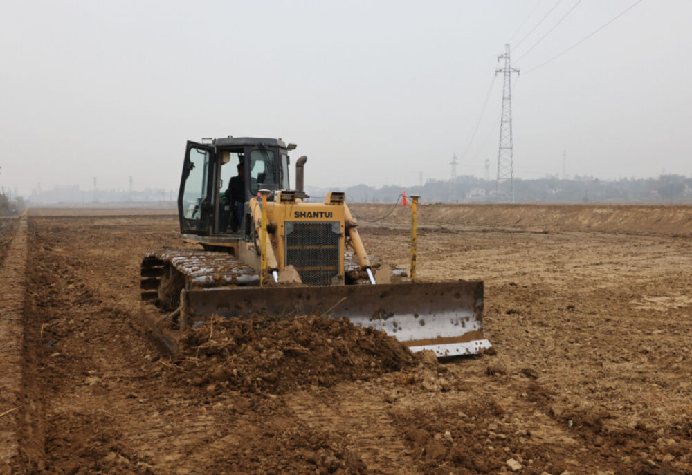 12月2日,走进天门镇朱村村高标准农田建设现场,挖掘机、推土机正在进行挖沟开槽、平整田地等作业,放眼望去,昔日零散地块逐步被整理成连片平整的田块。不远处,工人们正在进行沟渠挡墙施工,一派热火朝天的施工景象。“我们今年11月3日进场施工,投入了挖掘机、推土机等机械设备10余台,目前土地平整已完成40%左右,所有项目工程建设确保在明年4月底前全部完成,不影响农户农作物播种。”该项目现场施工负责人赵庆和介绍说。