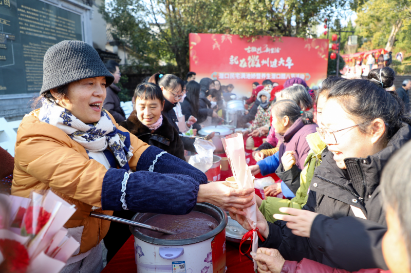 1月24日上午,徽州区潜口民宅博物馆成功举办“满池娇”暨养生潜口腊八节活动。活动现场,腊八粥飘香、非遗草龙起舞、春联剪纸传递吉祥、徽剧投壶趣味纷呈,吸引了众多游客与居民参与。