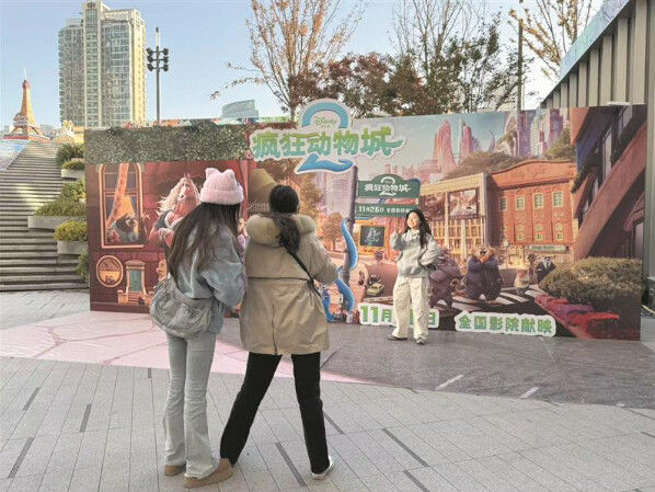与此同时,无锡万象汇的《疯狂动物城2》主题痛楼则呈现出另一番热闹景象。作为备受期待的动画续作,商场靠近地铁4号线1号出口的下沉通道以电影经典海报为主要装饰,朱迪兔与尼克狐的卡通形象栩栩如生,不仅吸引了不少亲子家庭驻足拍照,更成为年轻消费者的潮流打卡点。负一楼入口处还设置了电影主题互动区,通过地标打卡挑战等活动,让观众在购物之余可沉浸式感受电影的魅力。市民李女士笑着说:“我家孩子特别喜欢《疯狂动物城》,看到商场的布置就拉着我过来拍照,打卡成功后还赢了小礼品,孩子特别开心。”“我和朋友看完电影后顺路打卡,这里的布置很‘出片’,我把照片发到朋友圈后,好多同学都来问我地址。”刚看完电影的大学生小陈表示,这种观影与打卡的结合非常贴心,消费者既逛了街,又加深了对电影的印象,一举两得。