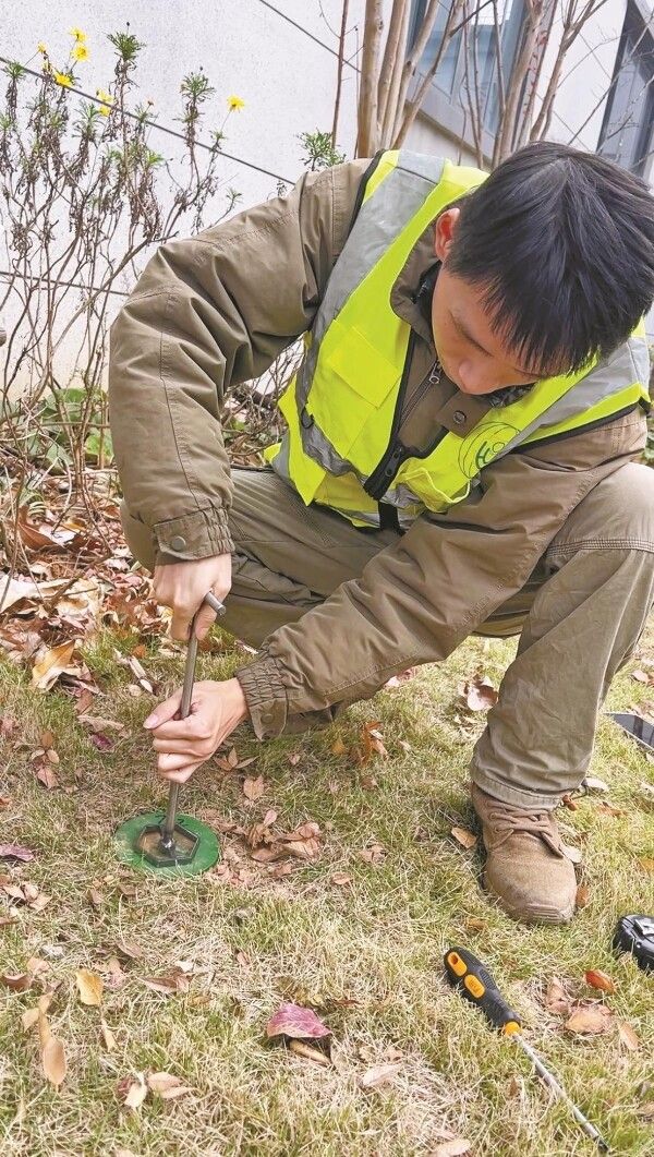 “只要白蚁啃食饵料触发警报,我们的手机就能第一时间收到预警信息,这些埋在地下的‘哨兵’,让白蚁防治从‘被动巡查’变成了‘主动预警’。”12月16日上午,海曙区春馨雅居小区的草坪上,施工单位负责人陈敬顶蹲下身,指着一处不起眼的白蚁监测装置介绍道。