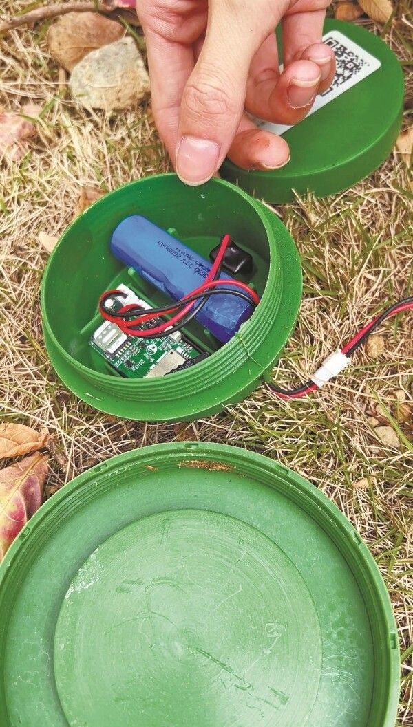 工作人员用专用工具打开一个监测装置,装置表面贴着专属二维码和编号,内部核心区域是连接着电子元件的松木饵料。“松木对家白蚁、土系白蚁、散白蚁等浙江地区常见的白蚁种类,有着极强的引诱性,能精准捕捉白蚁活动踪迹。”陈敬顶解释道。
