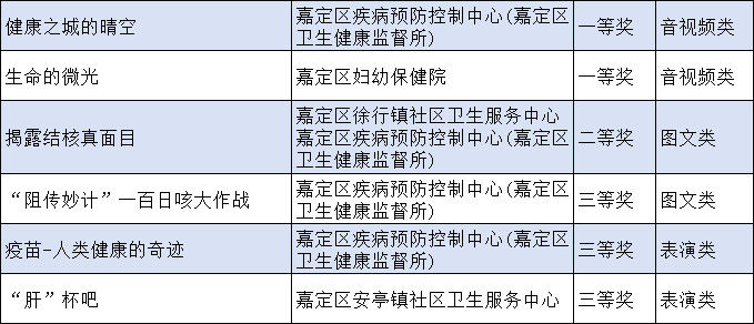 此次大赛中,嘉定区共有13个作品荣获市级奖项,其中2个作品斩获一等奖并成功晋级全国总决赛,嘉定区疾病预防控制中心(嘉定区卫生健康监督所)荣获优秀组织奖。