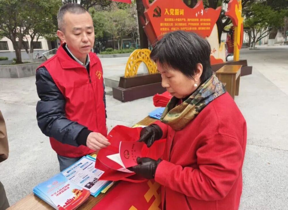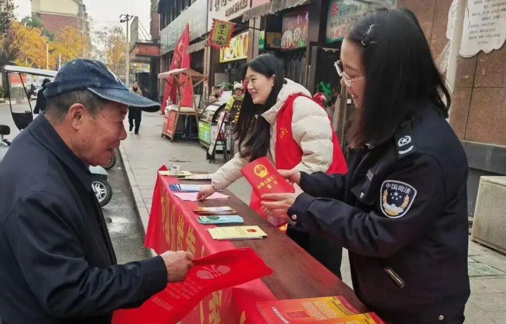 12月2日,人民社区联合长江路司法所、长江路派出所开展“学习宣传贯彻习近平法治思想,推动宪法深入人心”主题宣传活动,将宪法普及与反诈、反邪宣传有机结合,为居民送上实用的“法治大礼包”。(人民社区 俞陈艳)