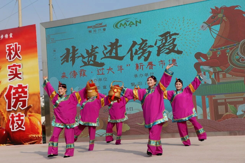 马年新春即将来临之际,近日,一场别开生面的“非遗进傍霞,来傍霞过大年”活动在屯溪区黎阳镇傍霞村霞隐河畔国际露营地精彩上演。徽州民俗、徽剧、非遗市集体验……让市民游客感受到扑面而来的浓浓年味。