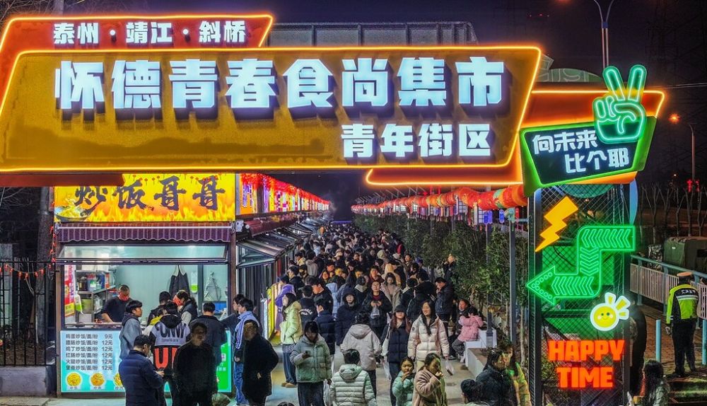 傍晚时分,常州大学怀德学院西侧的怀德青春食尚集市就热闹起来,霓虹灯光与食物香气交织。这个由斜桥镇全新打造,集青春潮流、特色美食、便民服务于一体的特色集市,自3月份开市以来日均客流量超5000人次,既破解了校园周边“马路市场”治理顽疾,更以文旅融合的创新实践,成为斜桥镇撬动乡村振兴的新支点。