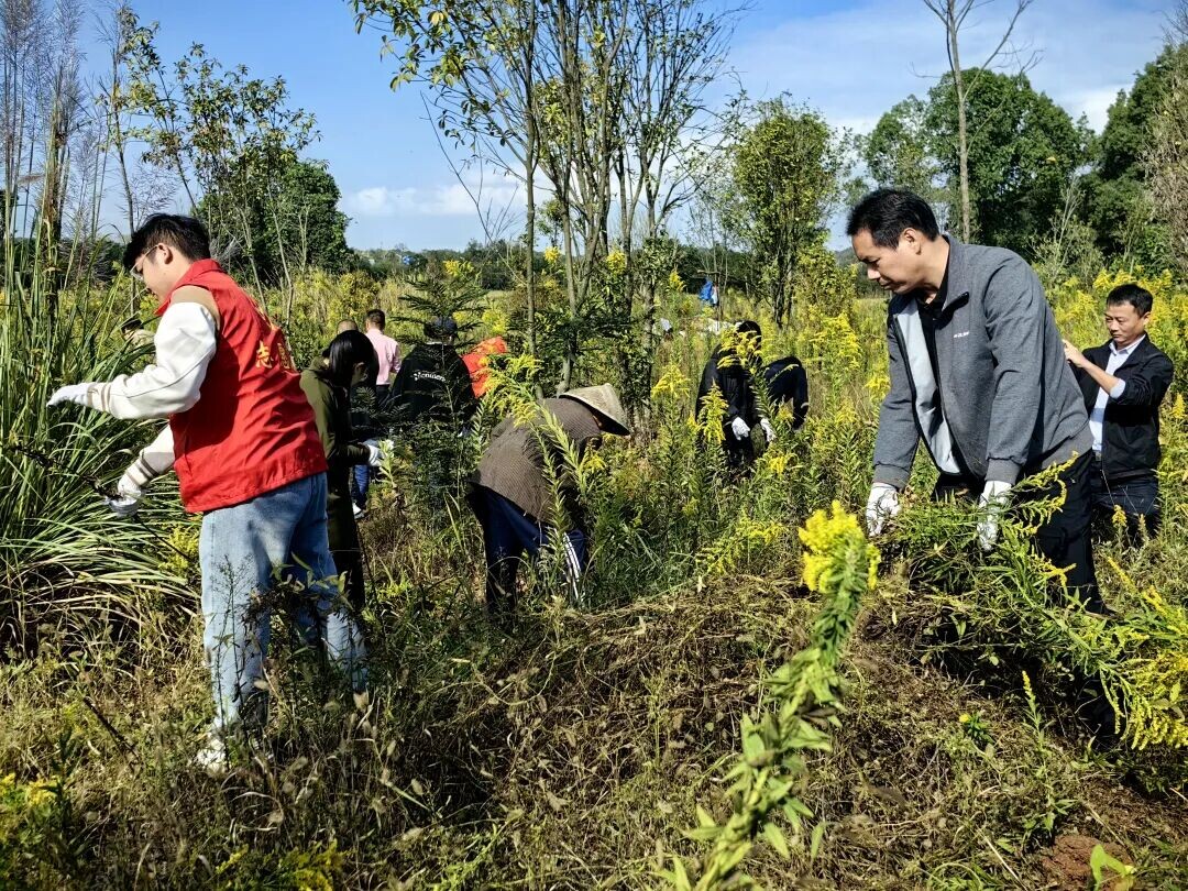 现场会上,区农技推广中心相关负责人围绕“加拿大一枝黄花”的基本特征、主要危害、防治方法及注意事项等进行了防控技术讲解。培训会后,所有与会人员和志愿者利用镰刀、铁锹等工具,对该区域“加拿大一枝黄花”进行集中铲除。